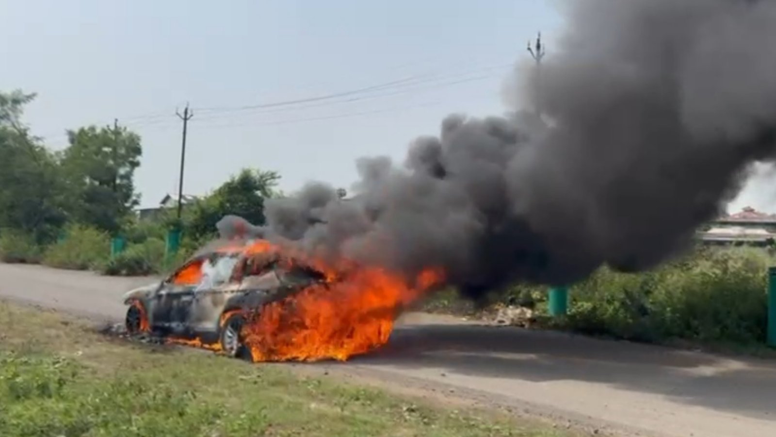 નેશનલ હાઈવે 48 પર BMW S1 કારમાં ભીષણ આગ